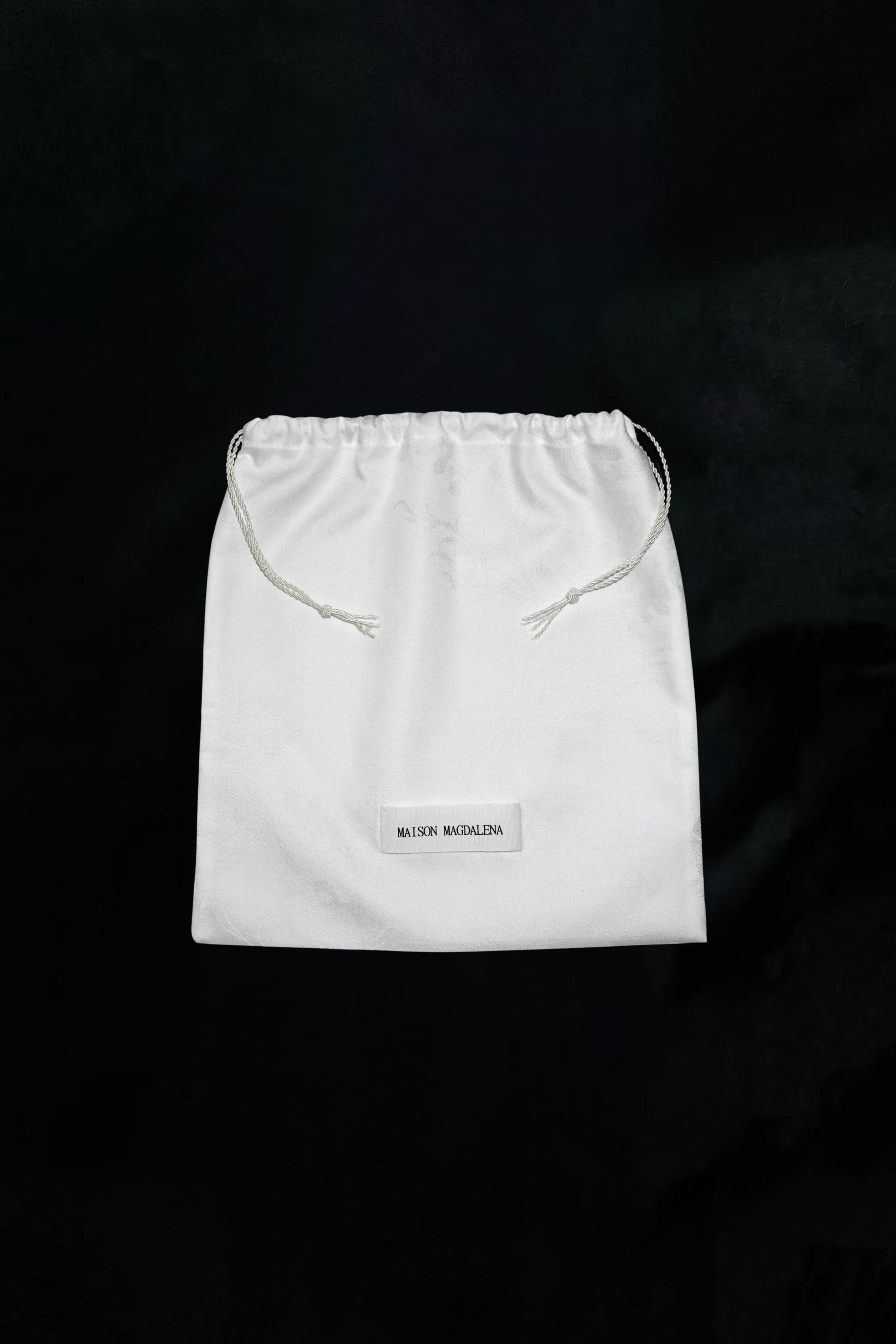Each belt comes in a handmade pouch made of deadstock luxurious damask cotton with a subtle floral pattern.