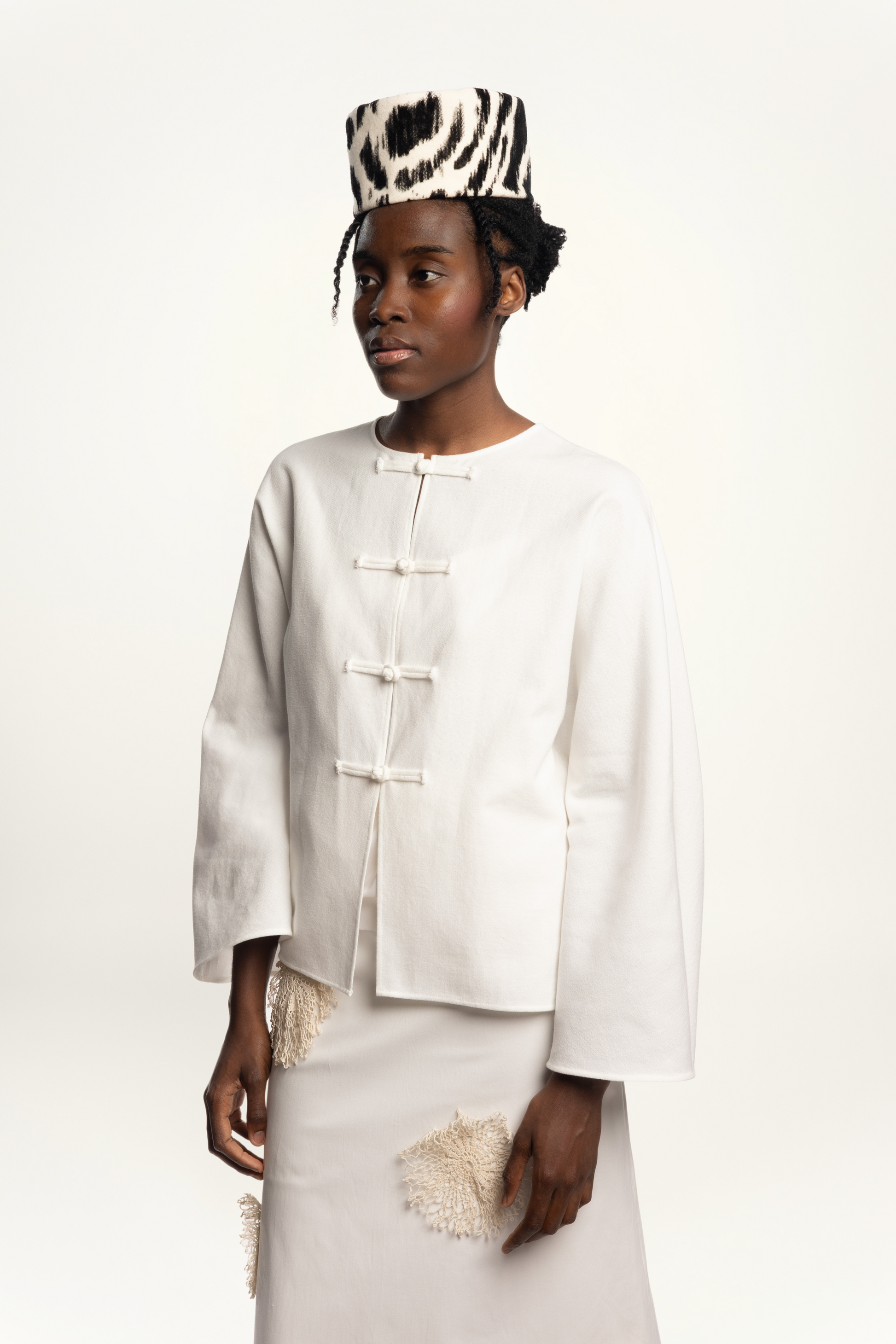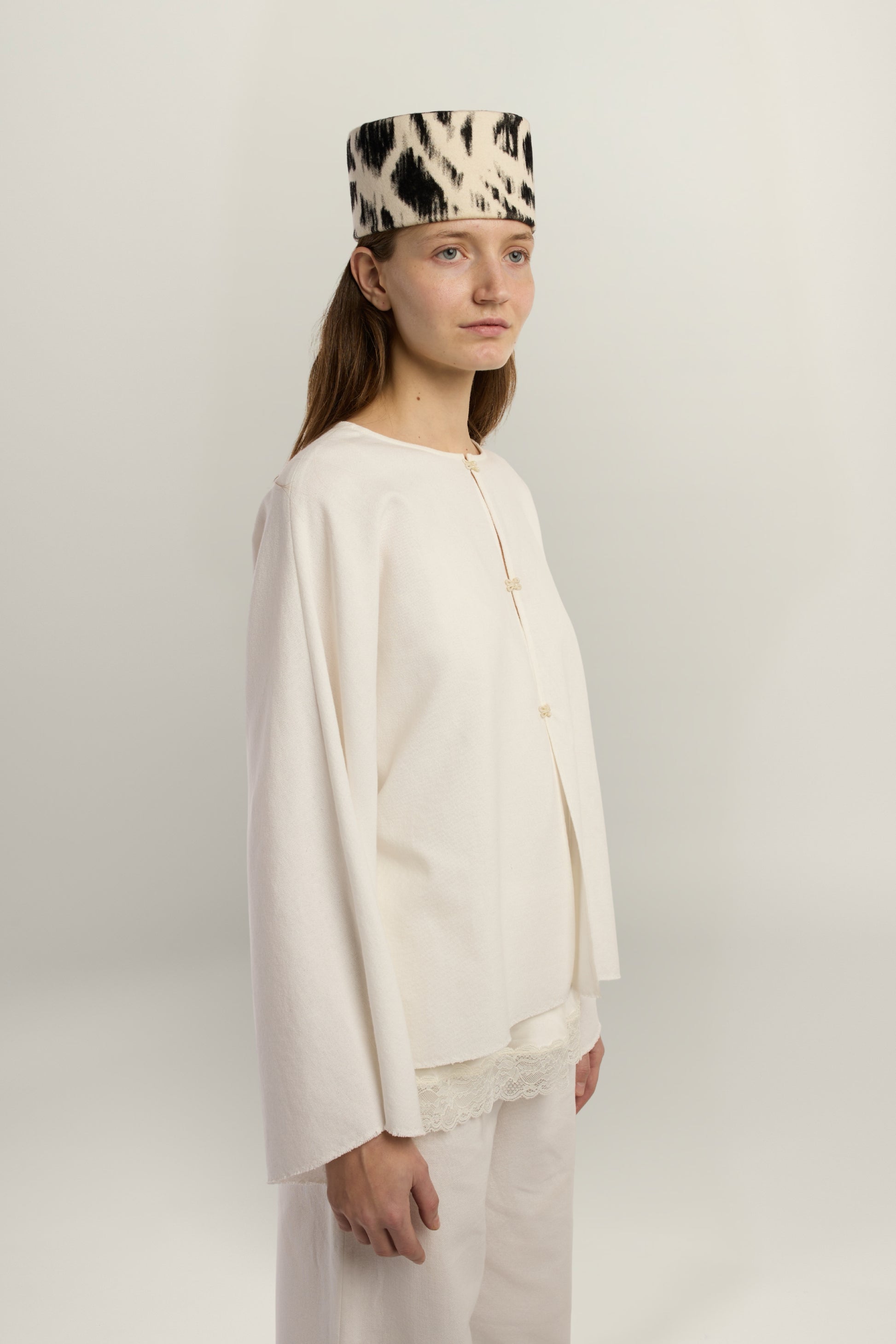 Réverie pillbox hat embodies bold, untamed elegance. Featuring our abstract animal print pattern, it merges dynamic brushstrokes with a dreamy allure. Inspired by vintage pillbox styles, it adds a sculptural accent to both casual and formal looks.