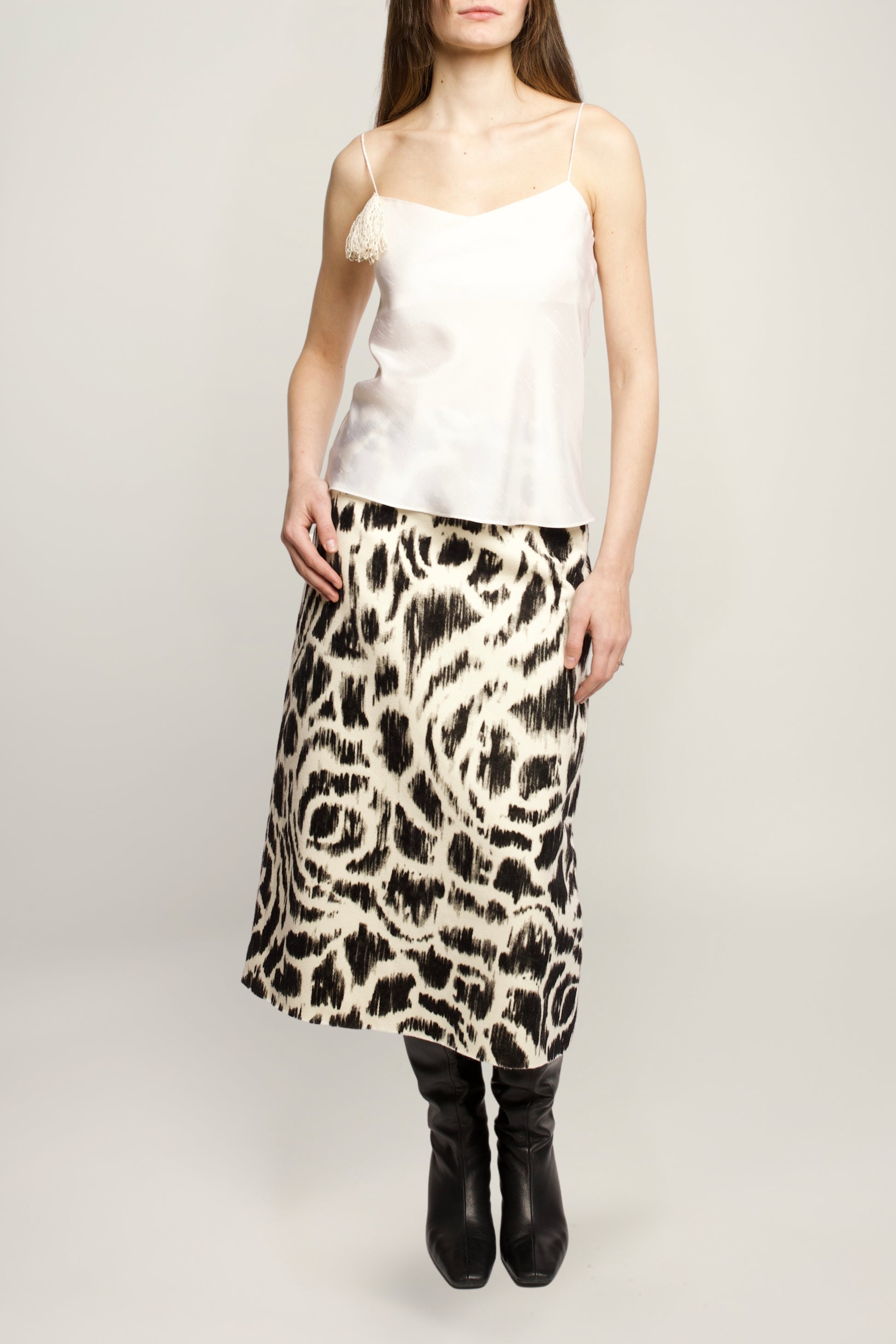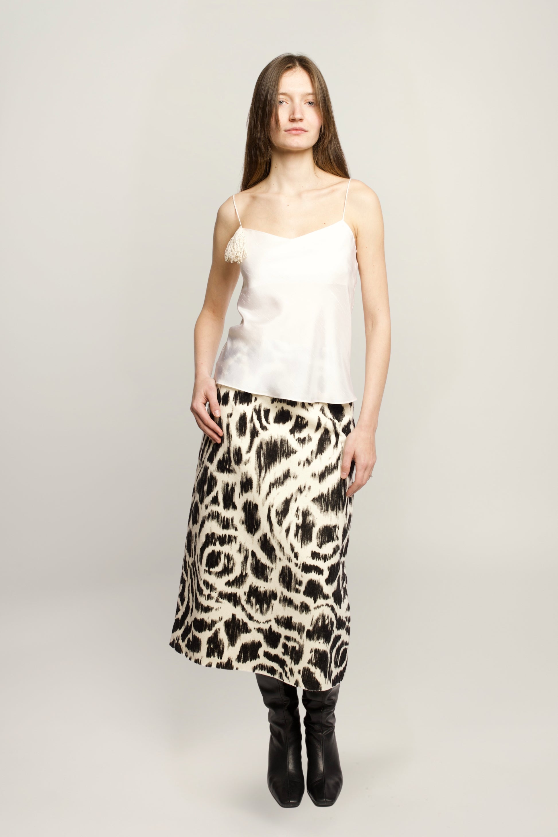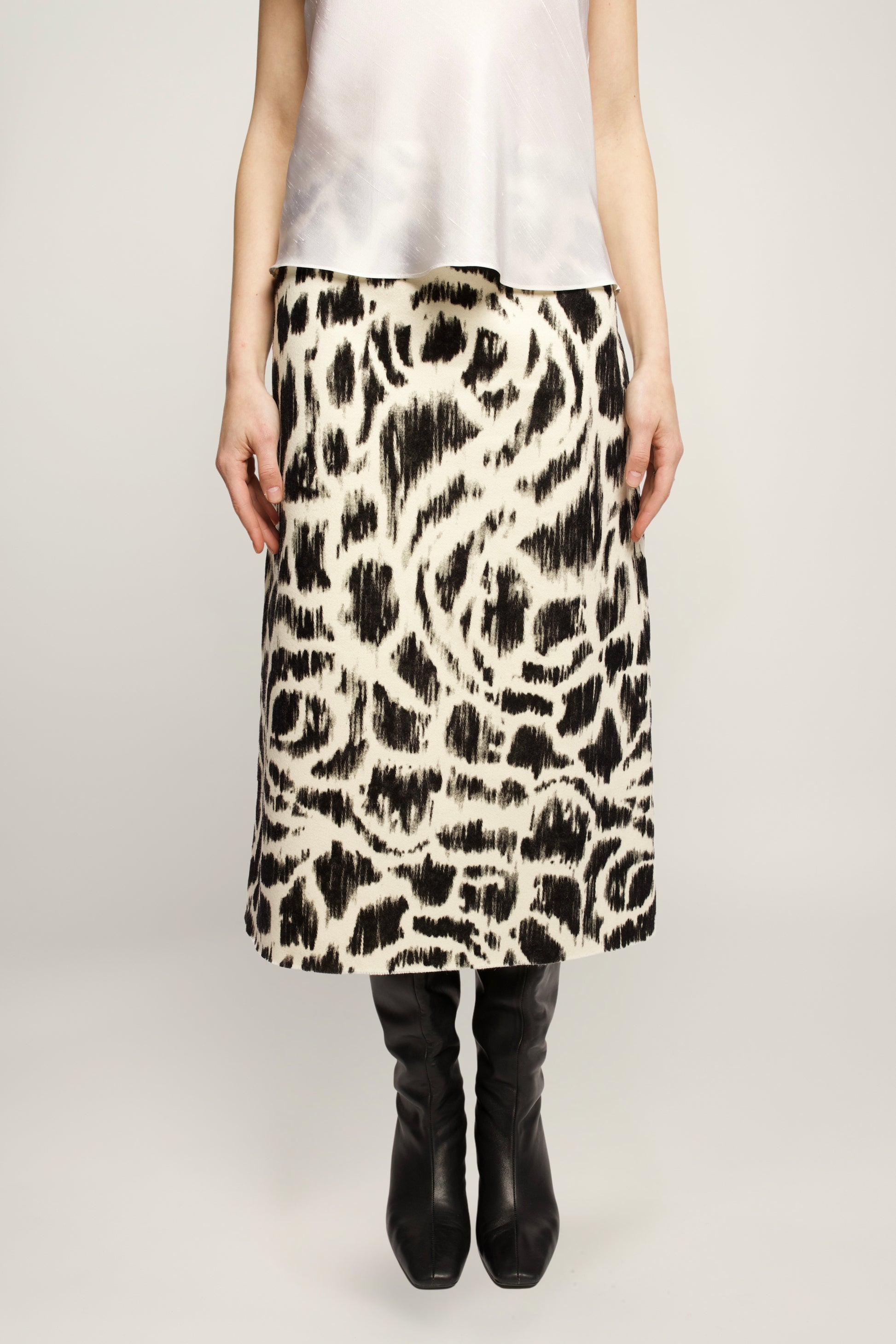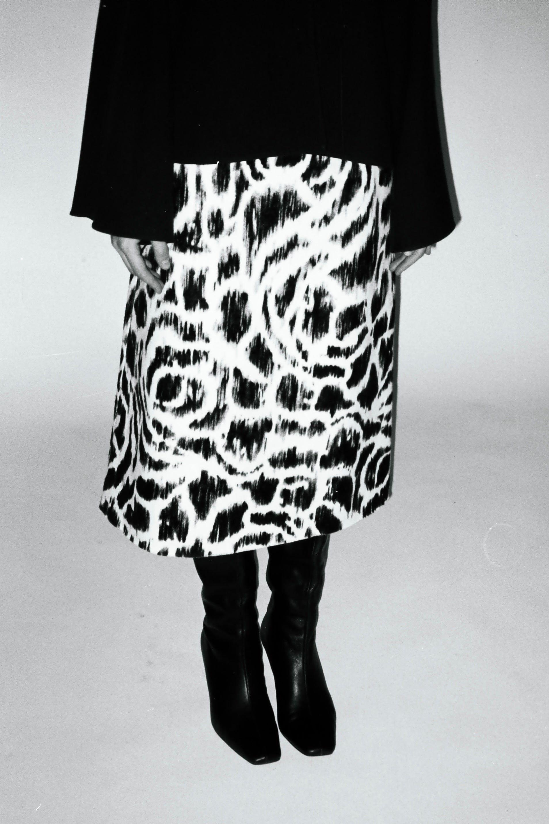 With its A-line silhouette, Réverie skirt creates a perfect balance between wild expression and refined tailoring. Featuring our abstract animal print pattern, it combines dynamic brushstrokes with a refined architectural line.